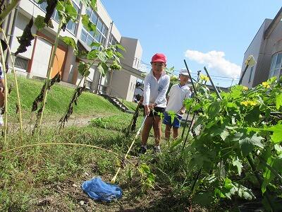 虫取り網と虫かごを持ち、校舎周辺のあちらこちらで、いきものを探しました。