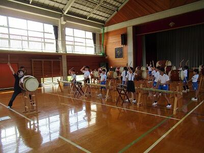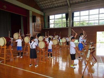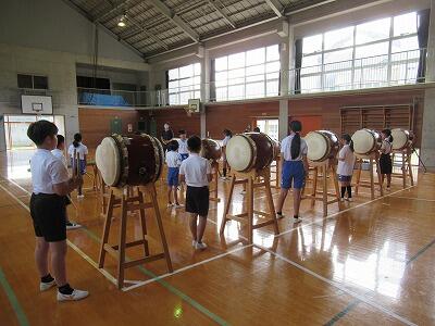 今日から、5・6年生が総合的な学習の時間に取り入れている「大佐源流太鼓」の練習が始まりました。
