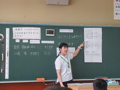 刑部小では、今日から2週間、看護学科の学生さん2名が、養護実習(保健室の先生になるための勉強)を行います。