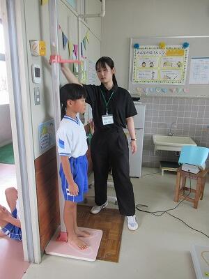 学生さんたちは、今週は、いろいろなクラスに入って、保健指導や発育測定など、実際に子ども達と関わるお仕事を経験しています。
