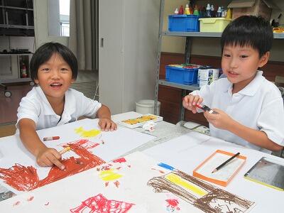 クレヨンや色えんぴつだけでなく、小学校に入学してから使えるようになった絵の具などを駆使しながら、楽しい時間を過ごしていました。