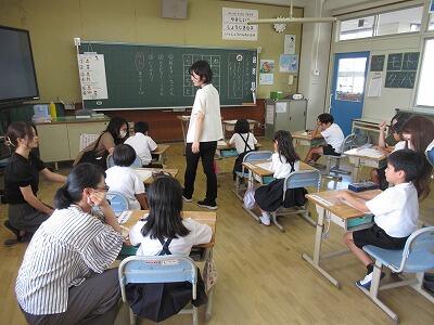 新見市の小中学校は、新見公立大学との連携事業で、学生の教育実習を受け入れています。