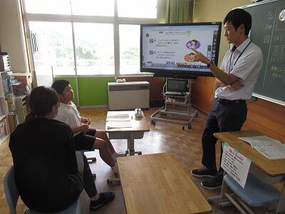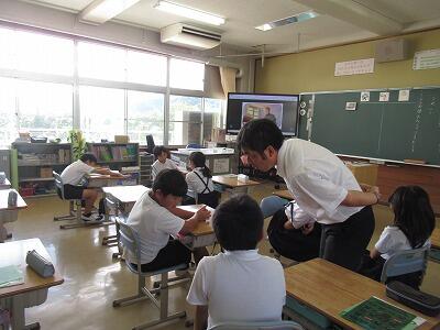 2人は、児童朝礼での自己紹介の後、今日は主に6年生の教室で見学等を行いました。