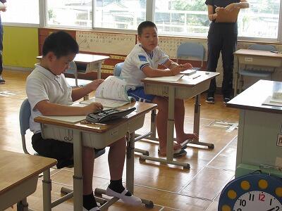 また、本日9月1日は、「防災の日」ということで、担当の養護の先生から、地震が起きた時の身の守り方や避難の方法について説明を受けました。
