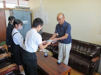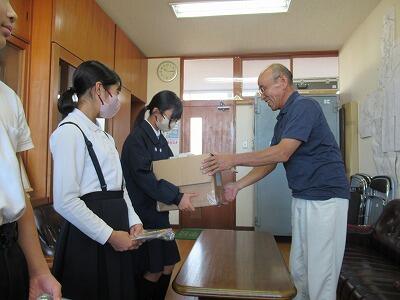贈呈式では、新見交通安全協会大佐支部の方から、企画委員の6年生に、反射材つきストラップのほか、文房具セット(1~3年生)、懐中電灯(4~6年生)が手渡されました。