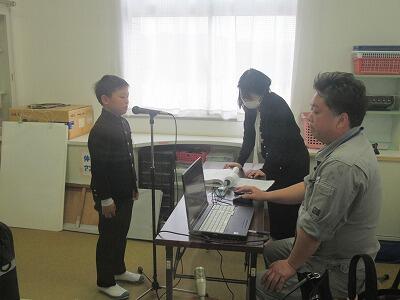 昼休みには、体育館でボール遊びをする子、運動場でブランコをする子がいました。また、市役所大佐支局の方が来られ、告知放送のレコーディングも行われました。