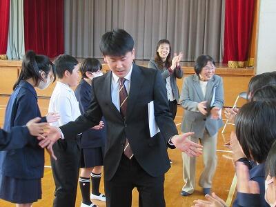 最後は、子ども達のアーチの中をくぐり、刑部小学校をあとにされました。
