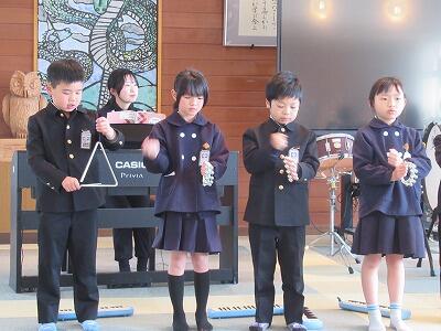 音楽朝礼 投稿: HP管理者 (03/17) 音楽朝礼 3月17日(火) 今朝は、音楽朝礼から、清々しい一日がスタートしました。 発表してくれた学年は、1・3・5年生です。 いずれの学年も、難しい合奏曲を、音色を合わせて見事に表現してくれました。 一年間でいろいろな楽器が使えるようになったことに、成長を感じました。 1年生 3年生 Tweet -