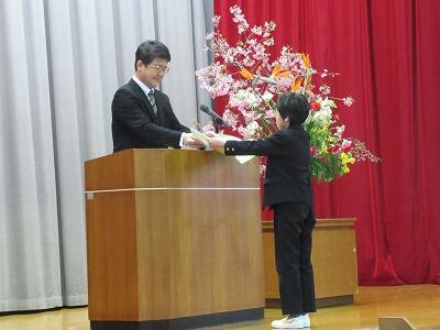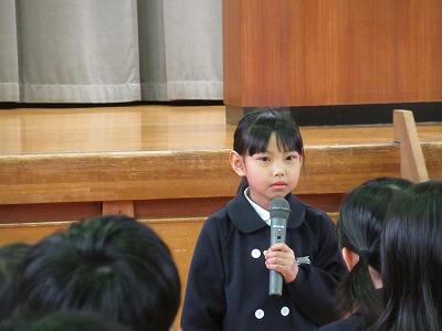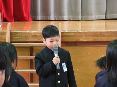 式の前には、各学年の代表児童が、3学期に頑張ったことを発表しました。低学年の児童も全校の前で堂々と発表する姿がとても立派でした。