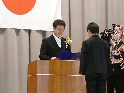 各学年の代表が壇上で修了証を受け取りました。